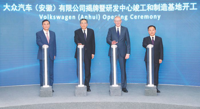 12月8日上午,大眾汽車(chē)(安徽)有限公司揭牌暨研發(fā)中心竣工和制造基地開(kāi)工儀式在合肥舉行。 記者 徐國(guó)康 攝