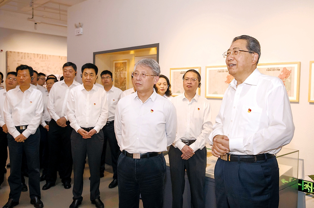 7月16日,省委書記李錦斌、黨史學(xué)習(xí)教育中央第三指導(dǎo)組組長沙海林與省委辦公廳綜合調(diào)研室黨支部全體黨員一起參觀“初心映江淮——慶祝中國共產(chǎn)黨成立100周年主題展”。 安徽日報記者 許昊 攝